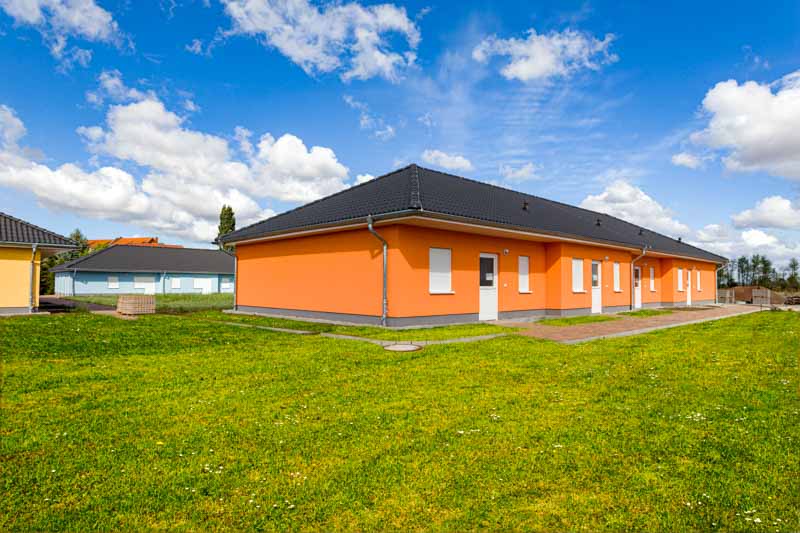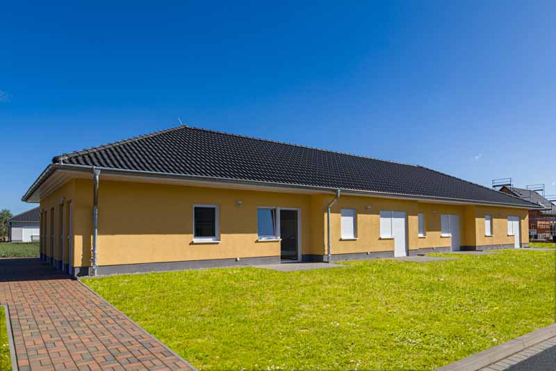 Die Anlage umfasst 16 1-geschossige 2-Raumwohnungen mit Wohnflächen zwischen 50 m² und 60 m².